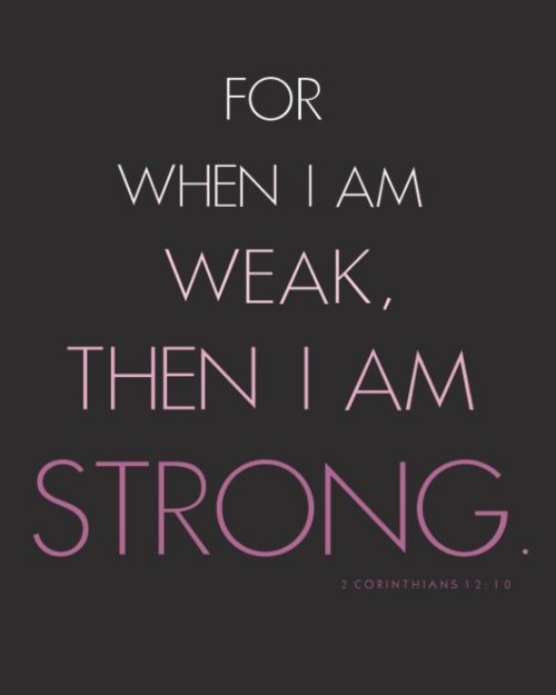 I am trying to let these words sink into my heart: That is why, for Christ’s sake, I delight in weaknesses, in insults, in hardships, in persecutions, in difficulties. For when I am weak, then I am strong. (2 Corinthians 12:10). I am trying.